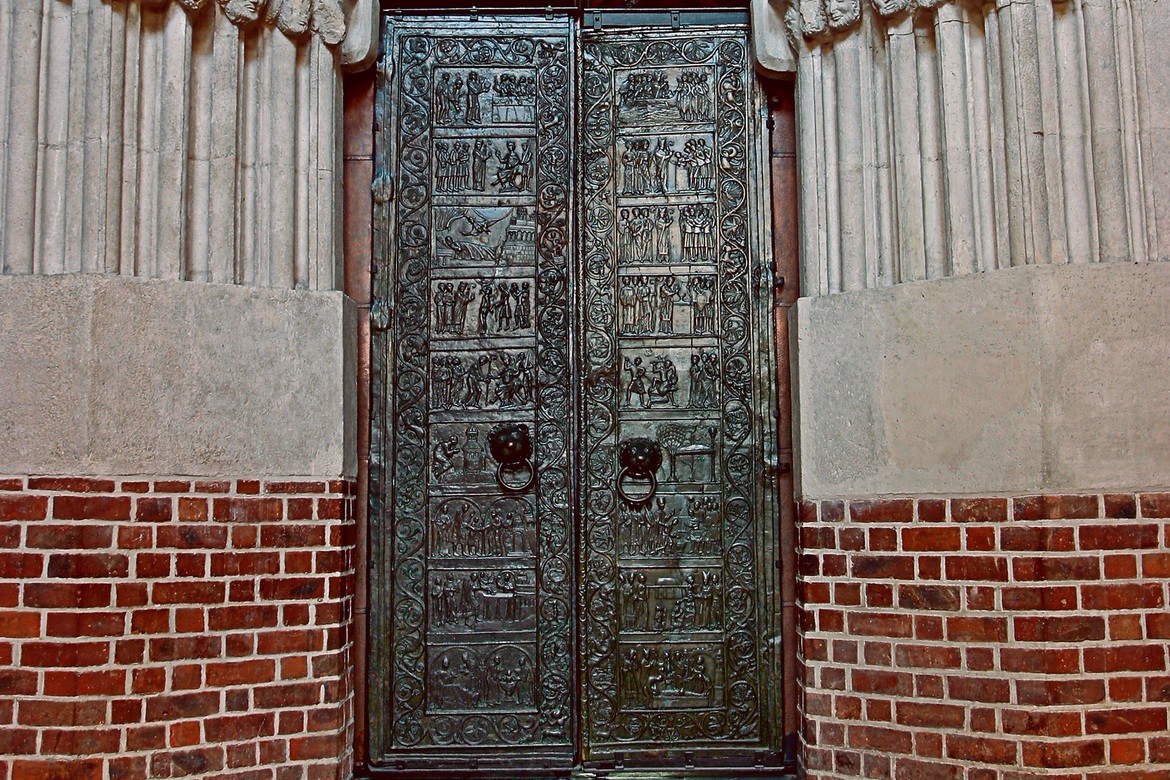 Chrám s vynikající akustikou ukrývá v barokní hrobce ostatky svatého Adalberta a ve vnitřní kruchtě nejcennější památku románského umění v Polsku – bronzová hnězdenská vrata (Drzwi Gnieźnieńskie). Osmnáct výjevů ze života mučedníka, které jsou na nich vyobrazeny, přibližuje animovaný snímek, který lze zhlédnout v nedalekém muzeu. Ve filmu Piotra Janowczyka a Magdaleny Gajewské ožívají basreliéfy z proslulých vrat. Hrdinové příběhu o svatém Vojtěchu vystupují ze svých políček a pohybují se po vratech za doprovodu stylové hudby. Nejcennějším exponátem muzea je originál achátového mešního kalicha svatého Vojtěcha.