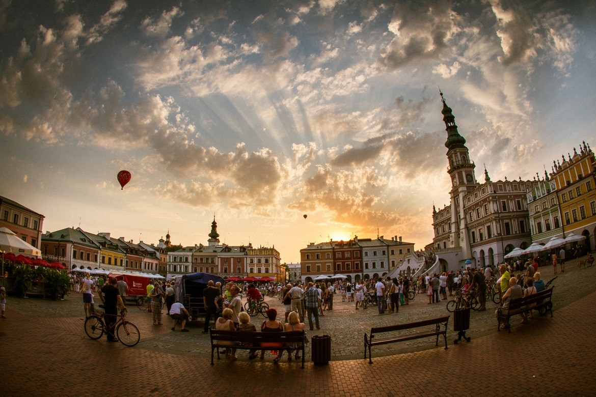 Zamość nás přenese do světa renesance, na který se z pomníku dívá sám Jan Zamojský. Barevné domy s podloubím obklopují radnici – symbol města a jednu z nejcennějších historických památek města Zamość.